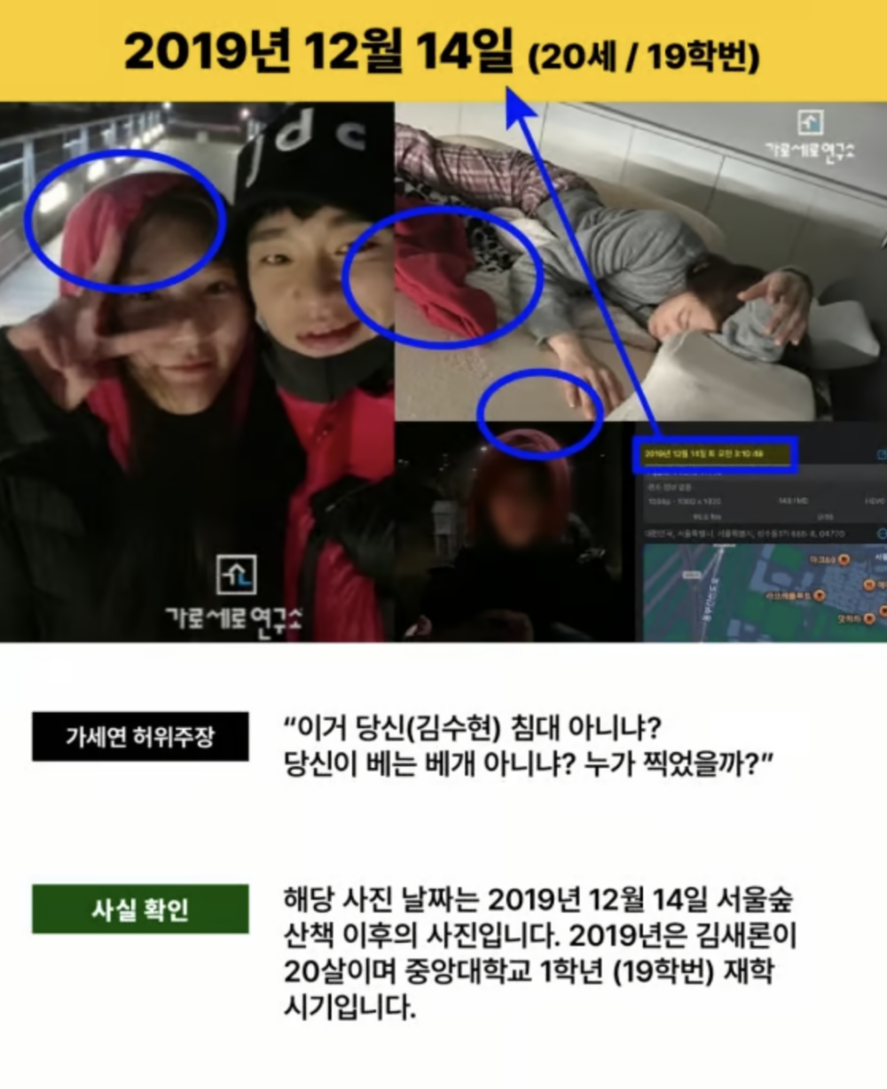 金秀賢方事實確認:該照片是2019年12月14日在首爾森林散步後的照片,2019年金賽綸20歲,正就讀中央大學1年級(2019年入學)。