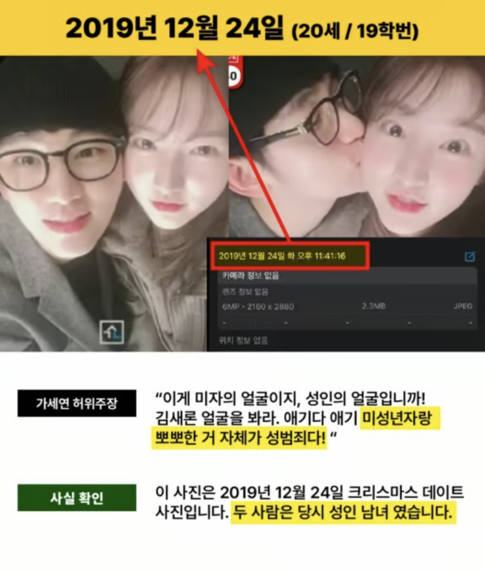 金秀賢方事實確認:該照片是2019年12月24日聖誕節約會的照片,兩人當時都是成年男女。