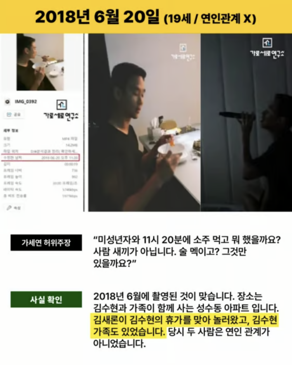 金秀賢方事實確認:這確實是2018年6月拍攝的,場所是金秀賢和家人一起住的公寓,金賽綸因金秀賢休假所以過來玩,當時金秀賢家人也在,兩人也還不是戀人關係。