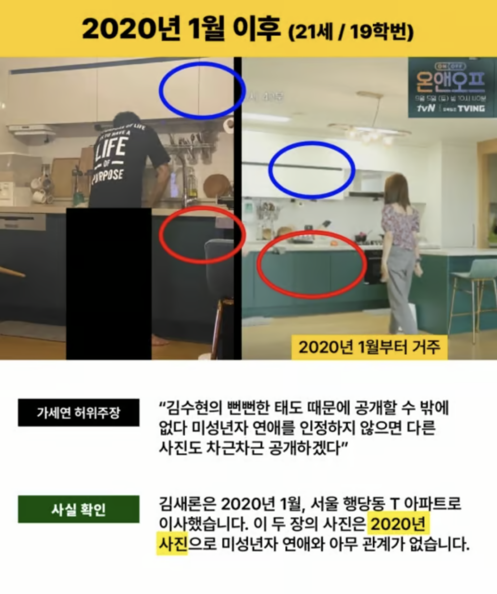 金秀賢方事實確認:金賽綸在2020年1月搬家到這個公寓,這兩張照片都是2020年的照片,和未成年戀愛沒有任何關係。