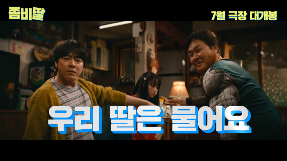 官方公開首支前導預告,開頭就展現了曹政奭向女兒提議模仿殭屍、企圖在殭屍群中逃生的搞笑演技!電影中,李正桓(曹政奭 飾)為了保護變成殭屍的女兒秀雅(崔惟理 飾),來到母親金凡順(李姃垠 飾)所居住的漁村。回到家的正桓溫柔喊著女兒的名字,並自然地制服衝過來咬人的女兒... 「我的女兒,是殭屍。」(旁邊貓貓好可愛♥)