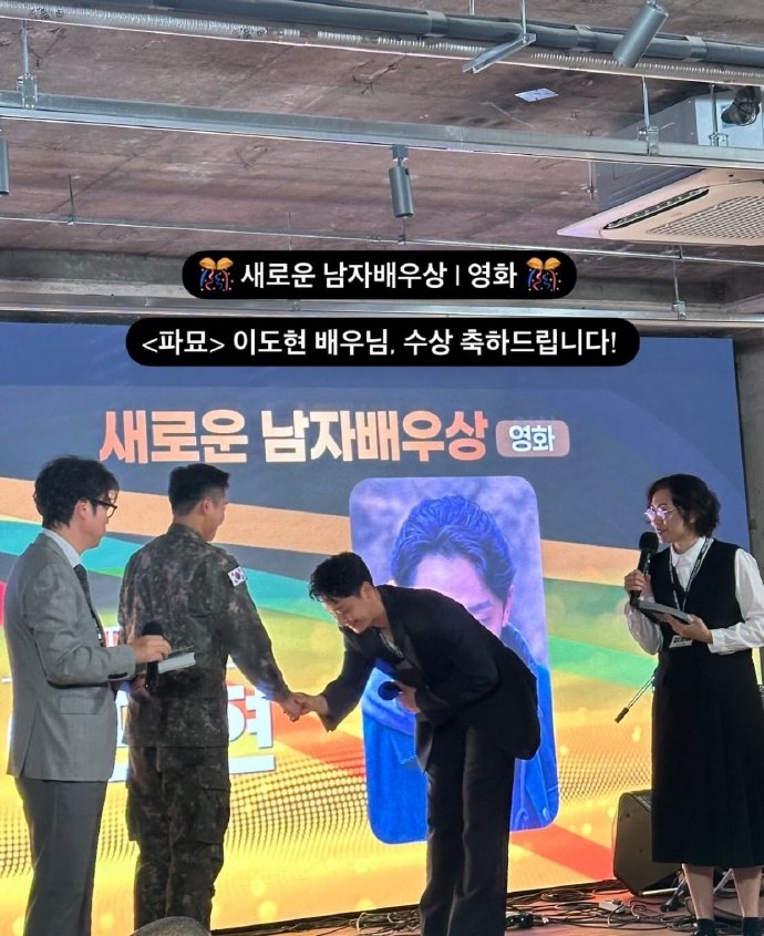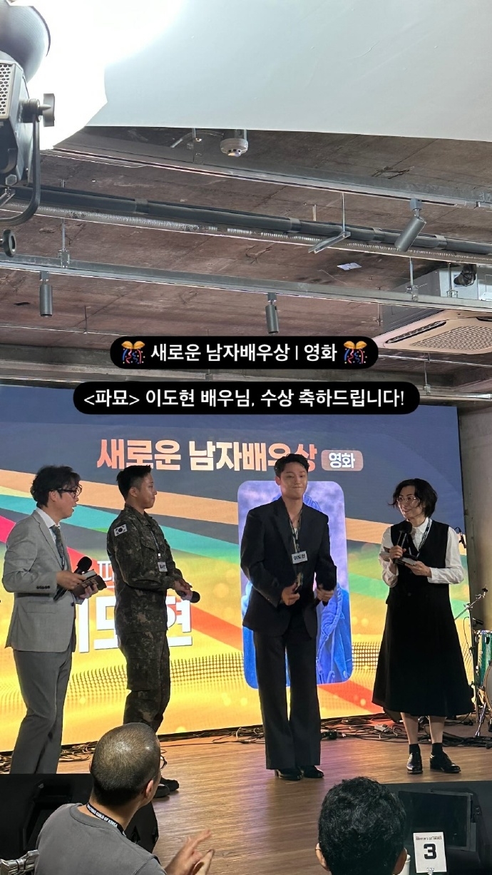 憑藉銀幕首作《破墓》電影部門新銳男演員獎的他也上台發表感言:「我會更加努力演戲,成為一位能夠不辜負大家期待的演員。」