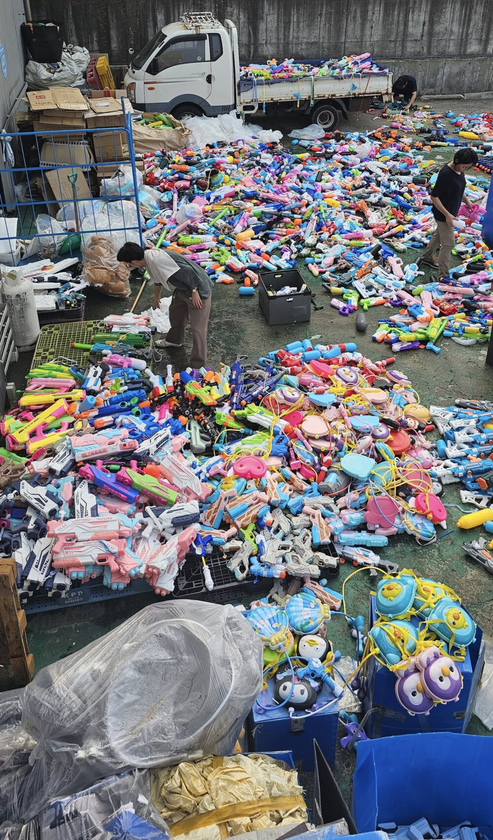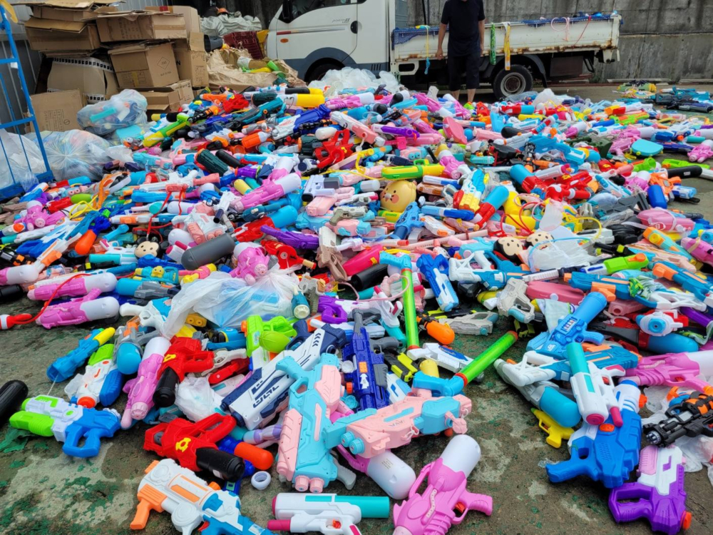 朴總長在貼文中也分享了多張照片,畫面中工作人員正在整理滿地的塑膠水槍,數量看起來非常壯觀,很快就在網上引發「製造塑膠廢棄物」、「資源浪費」爭議。不少網友表示:「沒想到有這麼多人直接丟掉水槍,太震驚了」、「不只浪費水,連水槍也丟掉,真的太誇張」、「主辦單位是否能改成借水槍、活動後回收的方式?」