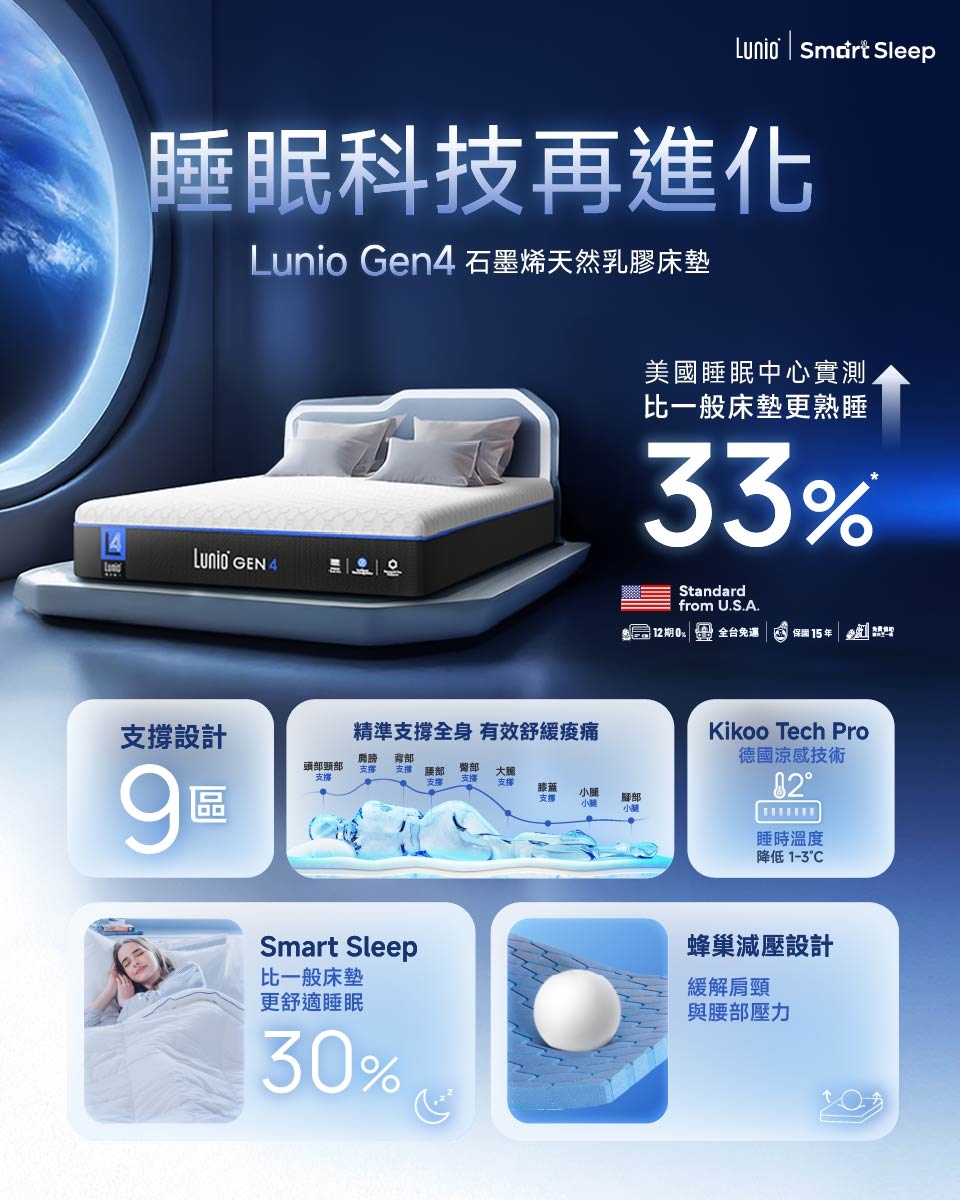 而這張床,就是來自台灣的智慧睡眠品牌 Lunio Gen4 釋壓床墊