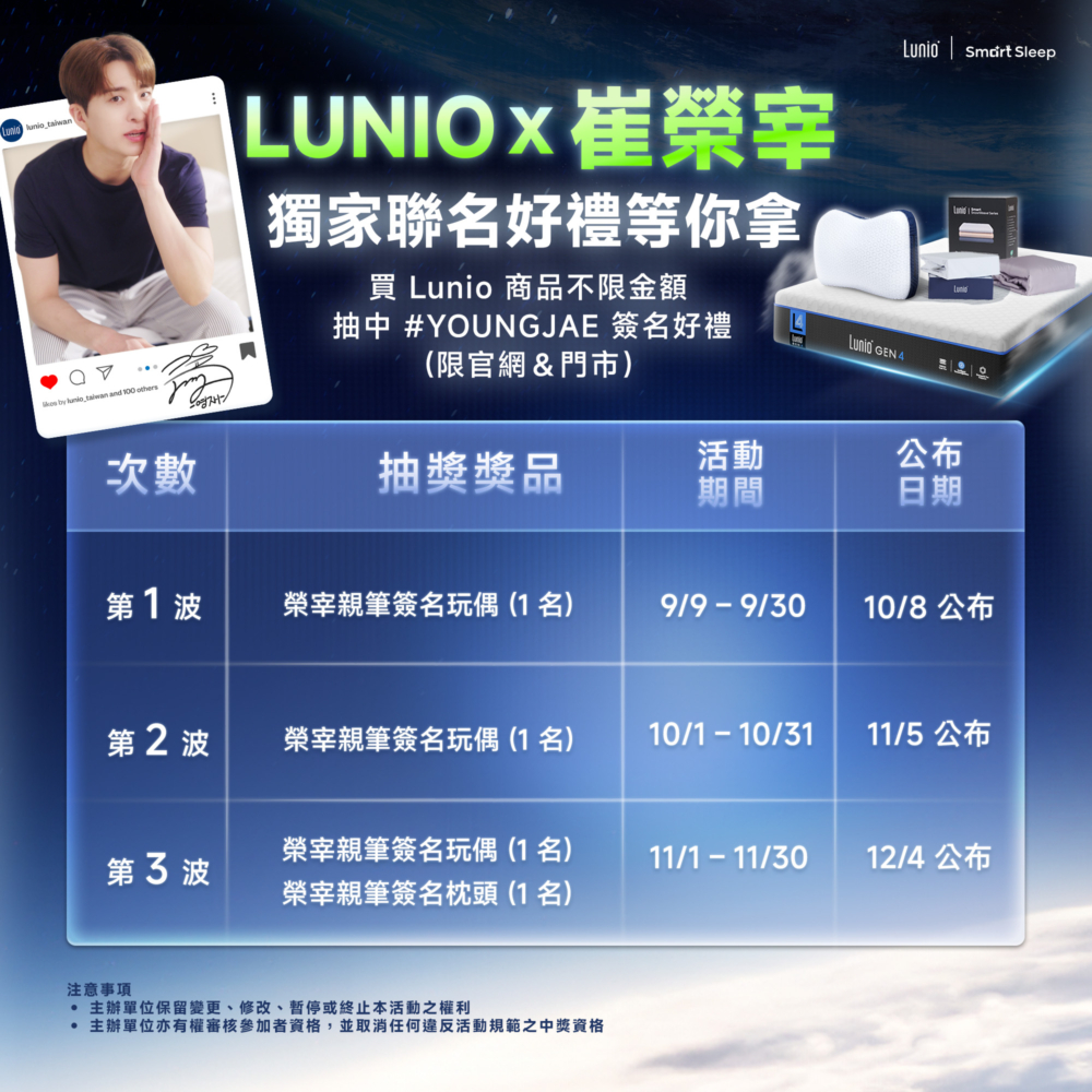 這次 Lunio × Youngjae 的合作,還特別準備了粉絲專屬的抽獎驚喜: