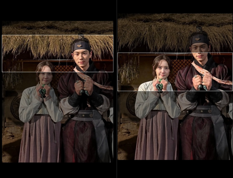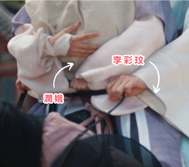 再來就是超明顯的「手大小差」。劇中有一幕,李獻騎馬將外出尋找食材的志永接回宮中,只見李彩玟在握拳的情況下,竟然還比潤娥的手大了將近兩倍!!