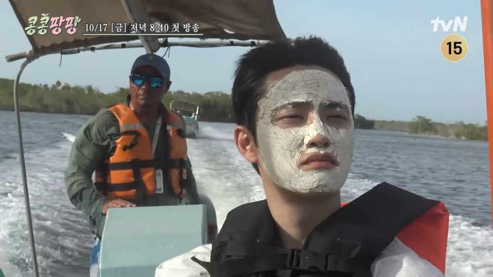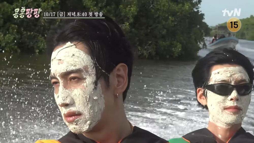 而同時間公開的另一個15秒版預告片,則可以看到李光洙、金宇彬、都敬秀乘船前往某處的畫面。三人臉上敷著面膜,表情全都一臉生無可戀,不難看出這趟所謂的旅行,其實更像是一場受難記XDD