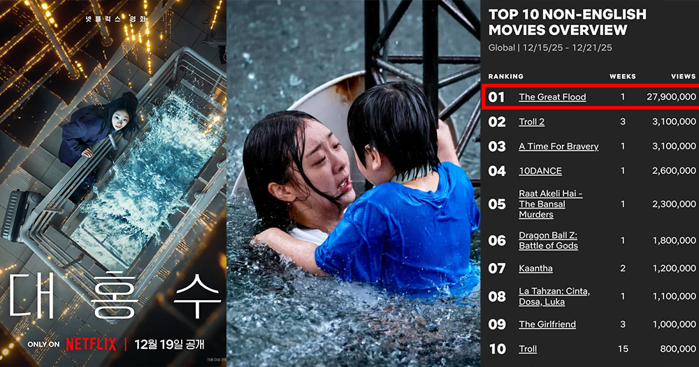 由金多美、朴海秀主演電影《巨洪》19日於Netflix上線後評價兩極,尤其在韓國收穫不少負評,被批災難片爆改AI科幻片是「掛羊頭賣狗肉」。但令人意外的是,該片不在海外卻獲得截然不同的評價,已累積近三千萬觀看,一舉衝上Netflix全球冠軍!