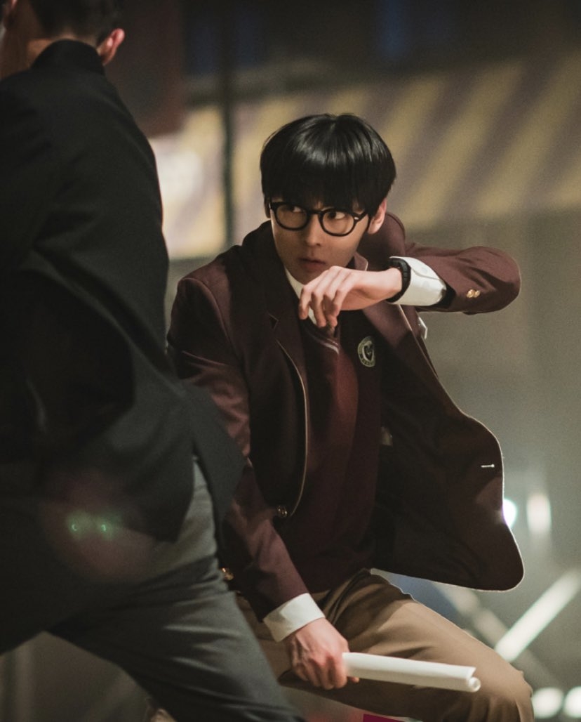 值得一提的是,黃旼炫為了完美呈現劇中的高強度動作戲,從開拍前兩個月就開始接受武術訓練,前後長達約8個月。拍攝時幾乎全程親自上陣,無論是空中旋轉超過 360 度的飛踢、燃燒書包的名場面,甚至吊鋼絲從 4 樓跳窗而下,全都沒有使用替身,敬業程度令人佩服!