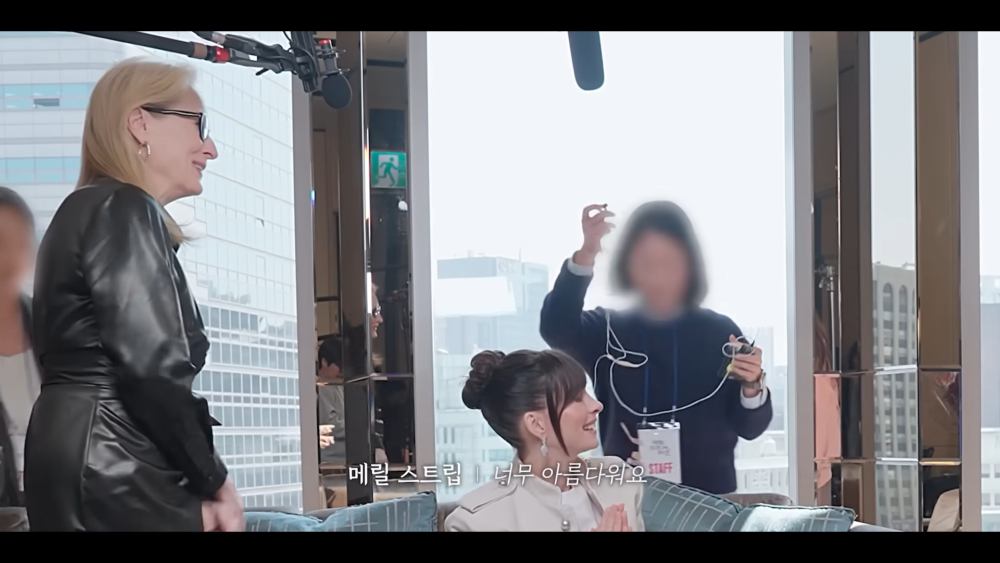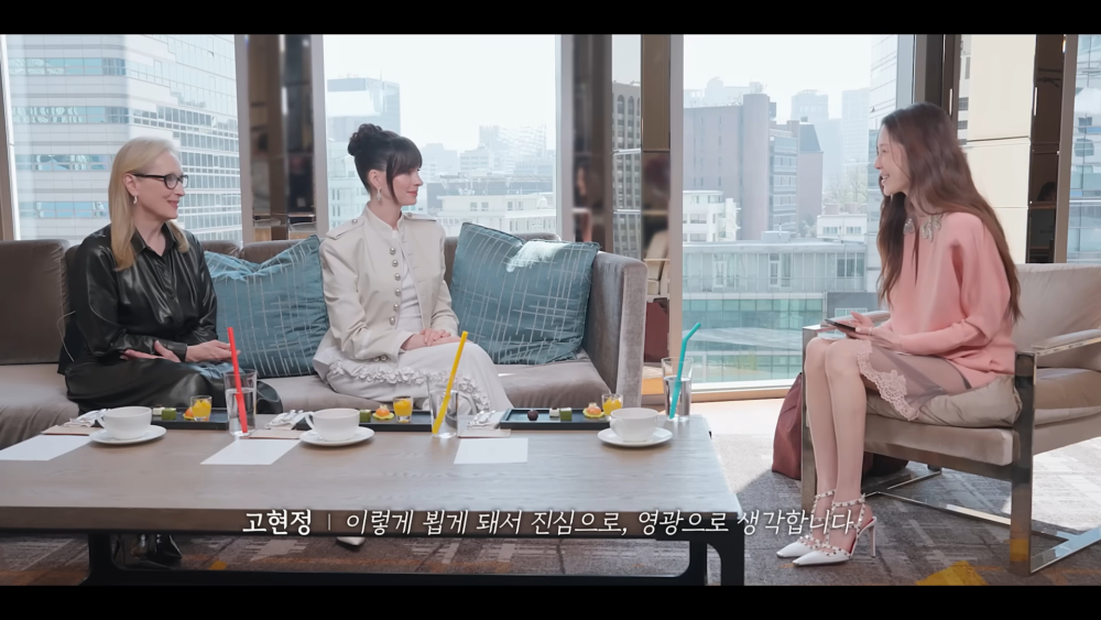 安·海瑟薇之前來過韓國一次,而梅莉·史翠普則是第一次來韓國,高賢廷也詢問兩位演員對韓國之行的感想。梅莉·史翠普表示:「這是第一次來,非常興奮。光是窗外的景色就讓人充滿期待。」還補充:「下次一定想停留久一點,好好旅行。」
